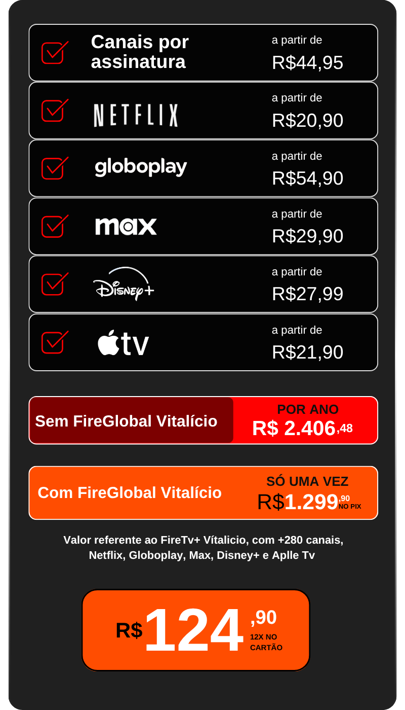 Trasforme sua TV em um centro de streaming com +400 canais, filmes, séries esportes - por um valor unico, sem mensalidades.
